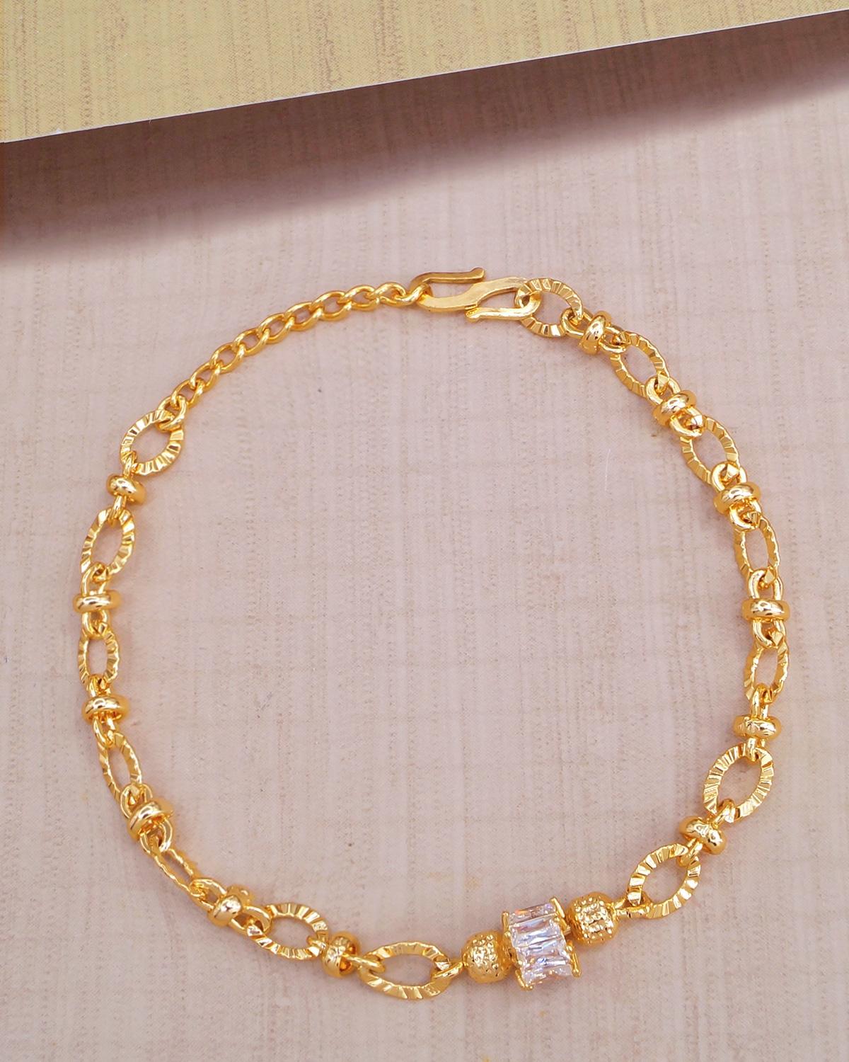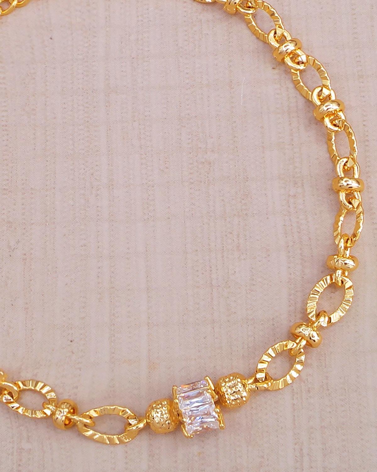 Enhance your jewelry collection with this elegant latest star charm AD stone bracelet. Featuring dazzling stones and delicate star charms, this gold-plated bracelet adds touch of glamour to any outfit. Perfect for festive occasions, casual wear, or as thoughtful gift for your loved ones.