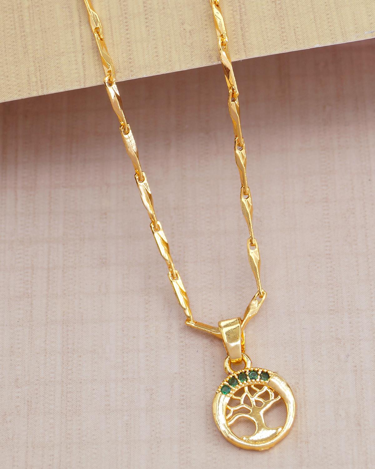 Adorn yourself with the timeless elegance of the Tree of Life Gold-Plated Pendant Necklace. Featuring a beautifully detailed tree of life design and accented with sparkling green stones, this piece adds a touch of sophistication to any outfit.