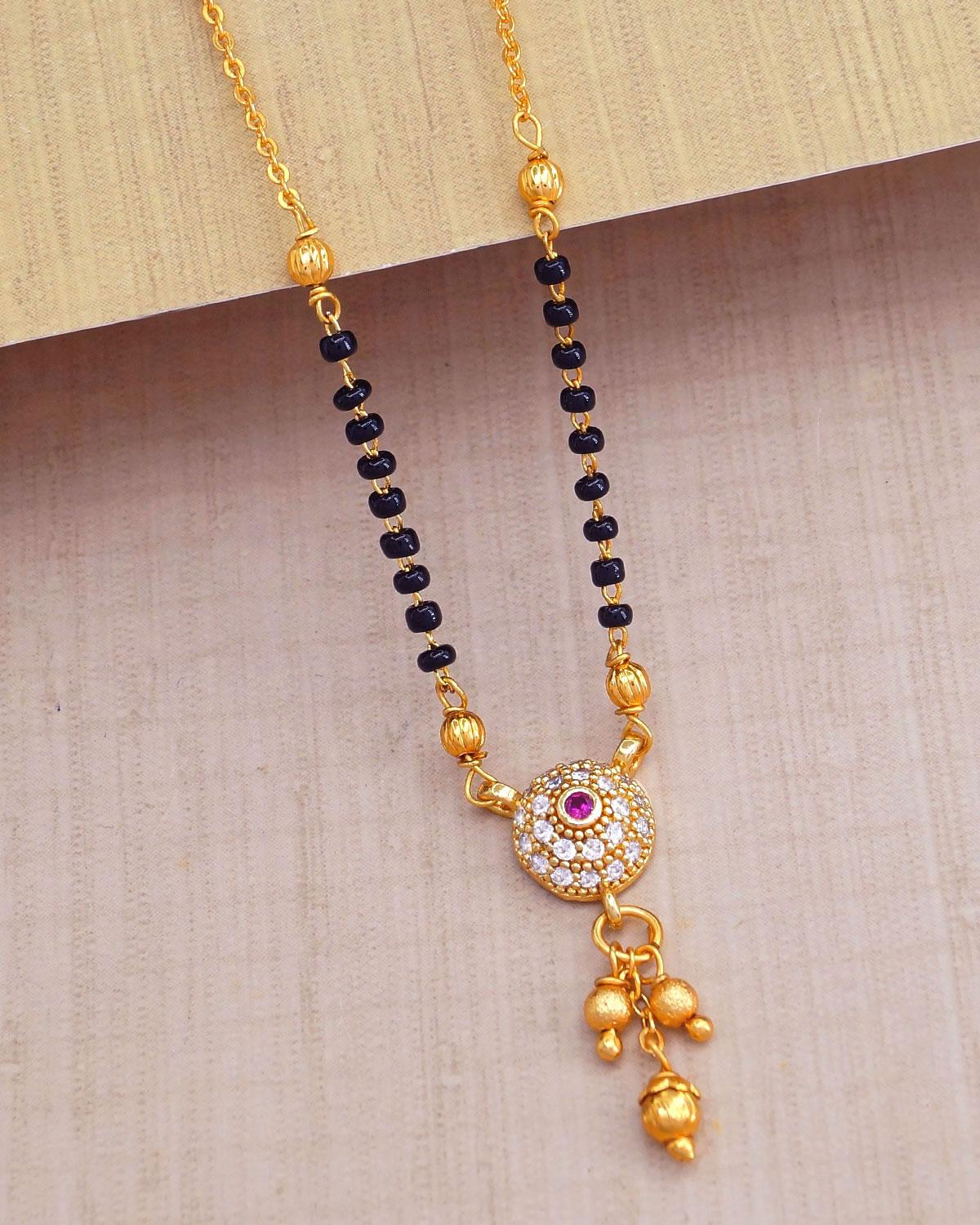Celebrate tradition with this stunning Karugamani Andhra Thali stone pendant. This pendant showcases intricate craftsmanship and authentic design, making it a perfect addition to your collection of traditional jewelry.