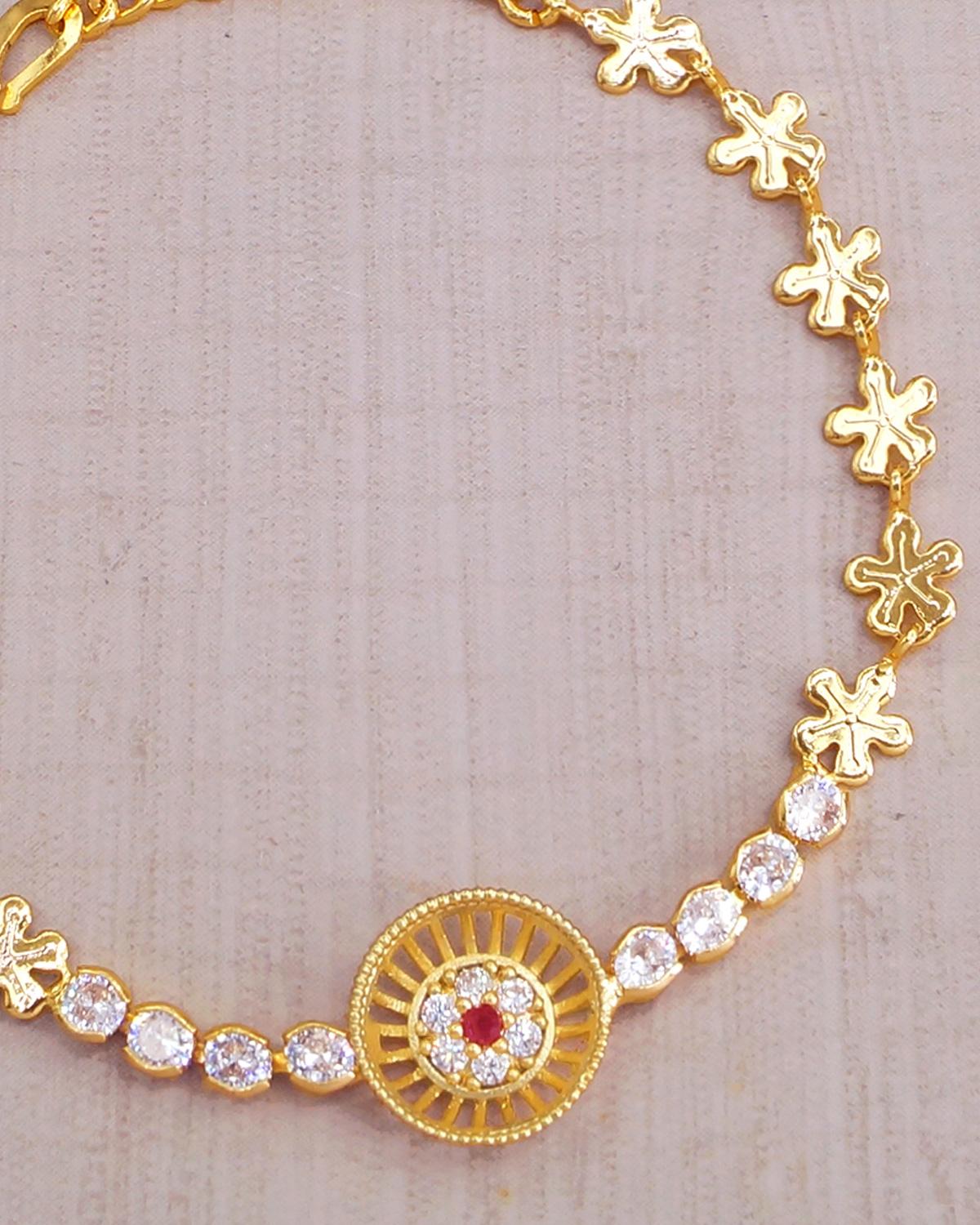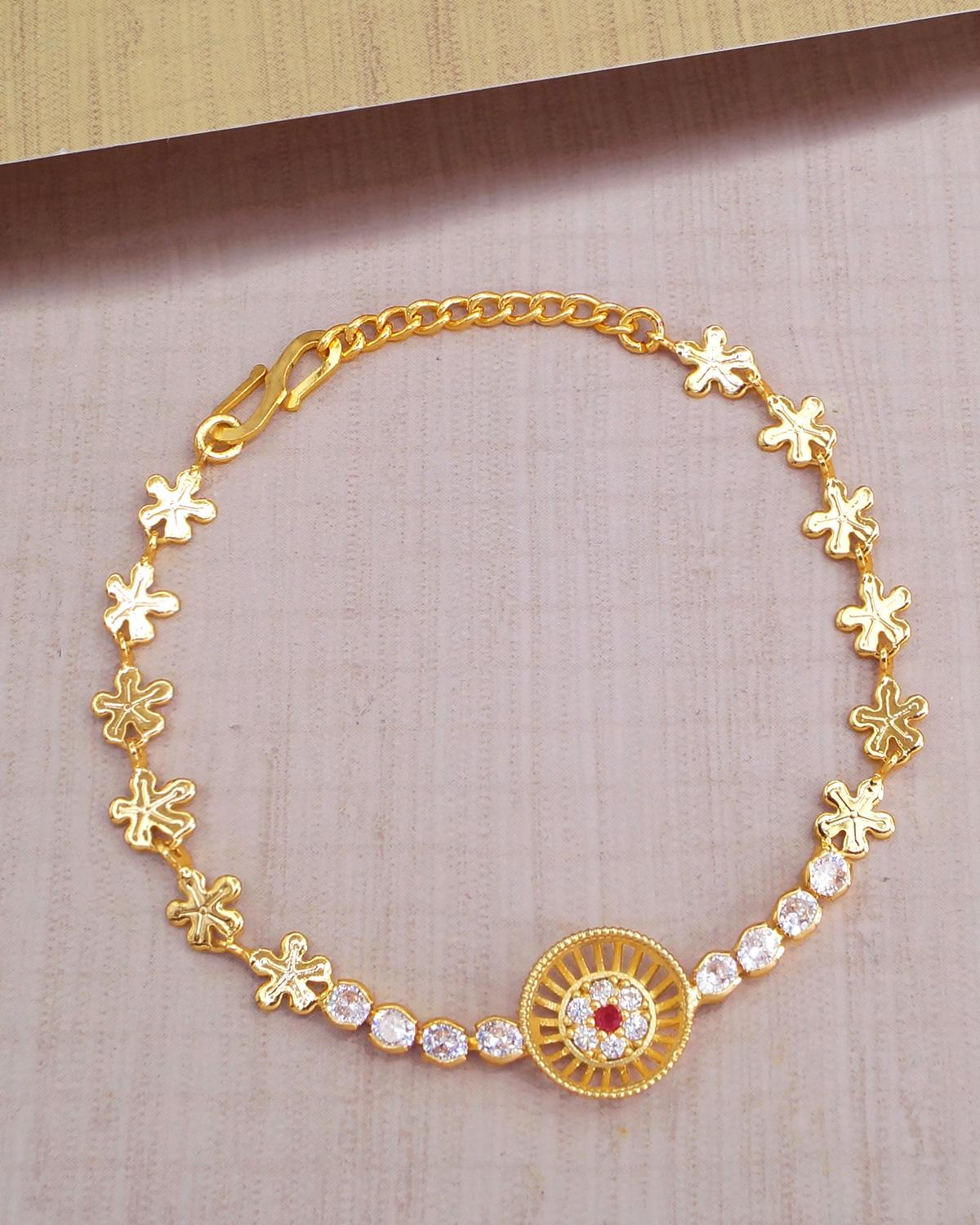 Enhance your jewelry collection with this elegant latest star charm AD stone bracelet. Featuring dazzling stones and delicate star charms, this gold-plated bracelet adds a touch of glamour to any outfit. Perfect for festive occasions, casual wear, or as thoughtful gift for your loved ones.