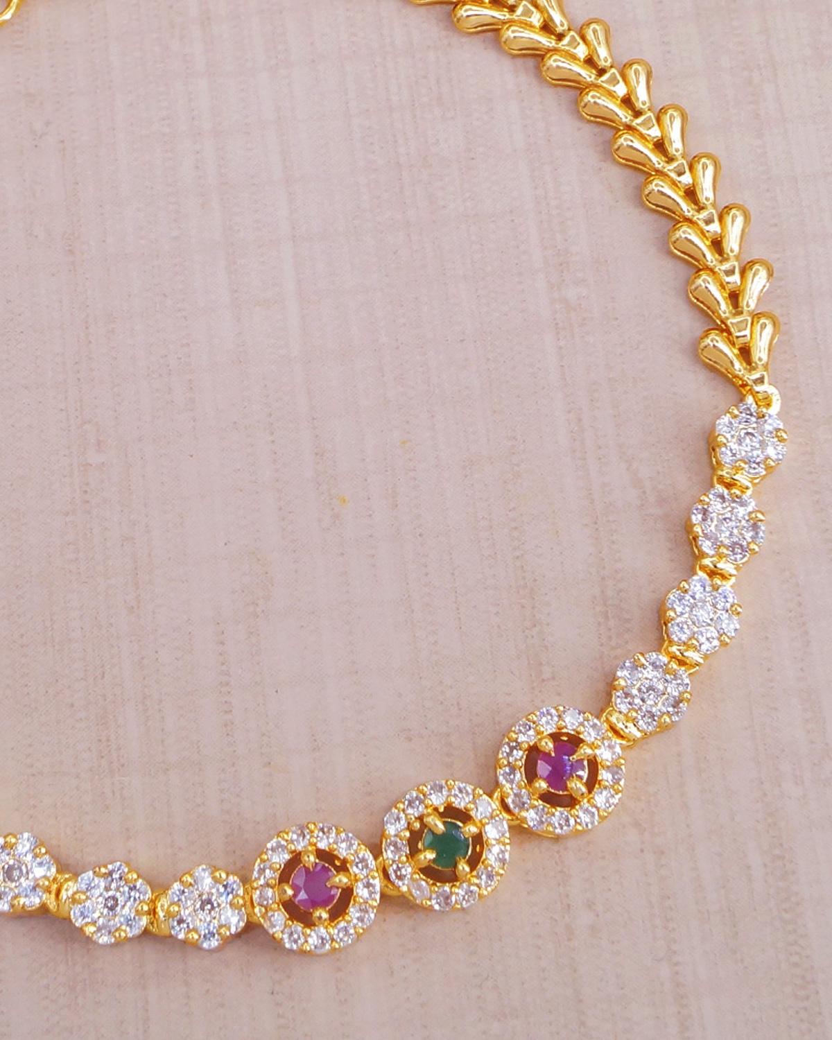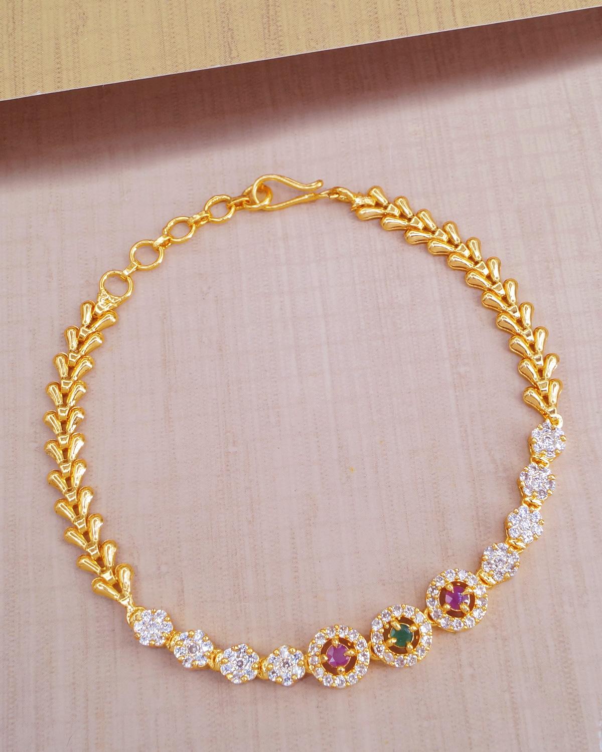 Enhance your elegance with this stylish AD stone floral bracelet. Featuring a delicate floral design adorned with sparkling AD stones, this gold-plated bracelet is perfect for adding charm to any outfit. Ideal for parties, weddings, and special occasions.