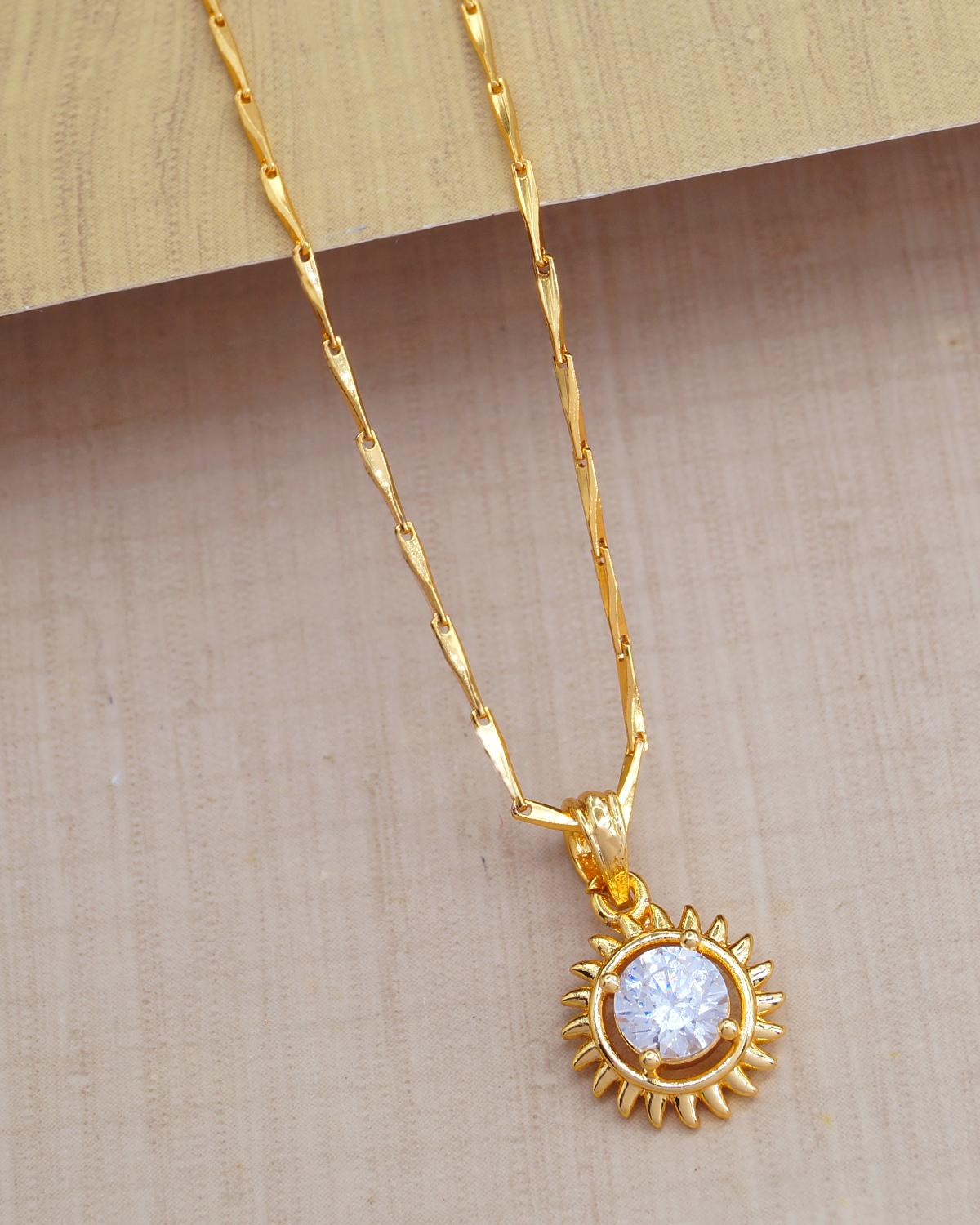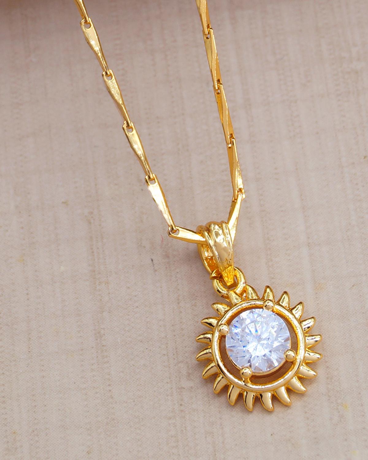 This elegant white stone pendant is set in a stunning gold setting, exuding timeless beauty and sophistication. The delicate chain complements the pendant perfectly, adding a touch of glamour to any outfit.